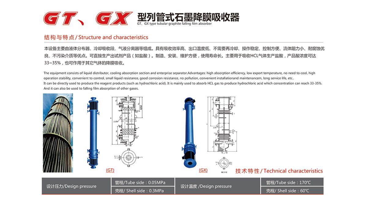 GT、GX型列管式石墨降膜吸收器